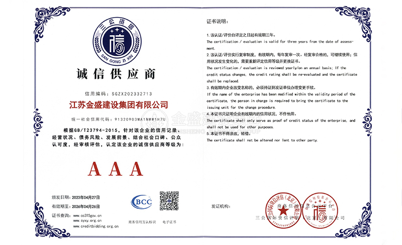 3A級(jí)資信等級(jí)證書